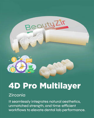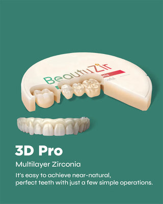 Multilayer zirconia--Tosoh powder with good physical properties is used exclusively, and the pressed zirconia is more stable. The natural transition of color with a three-dimensional gradient effect of strength and transparency is a highly aesthetic restorative material that requires only simple manipulation to achieve a near-natural tooth effect.
